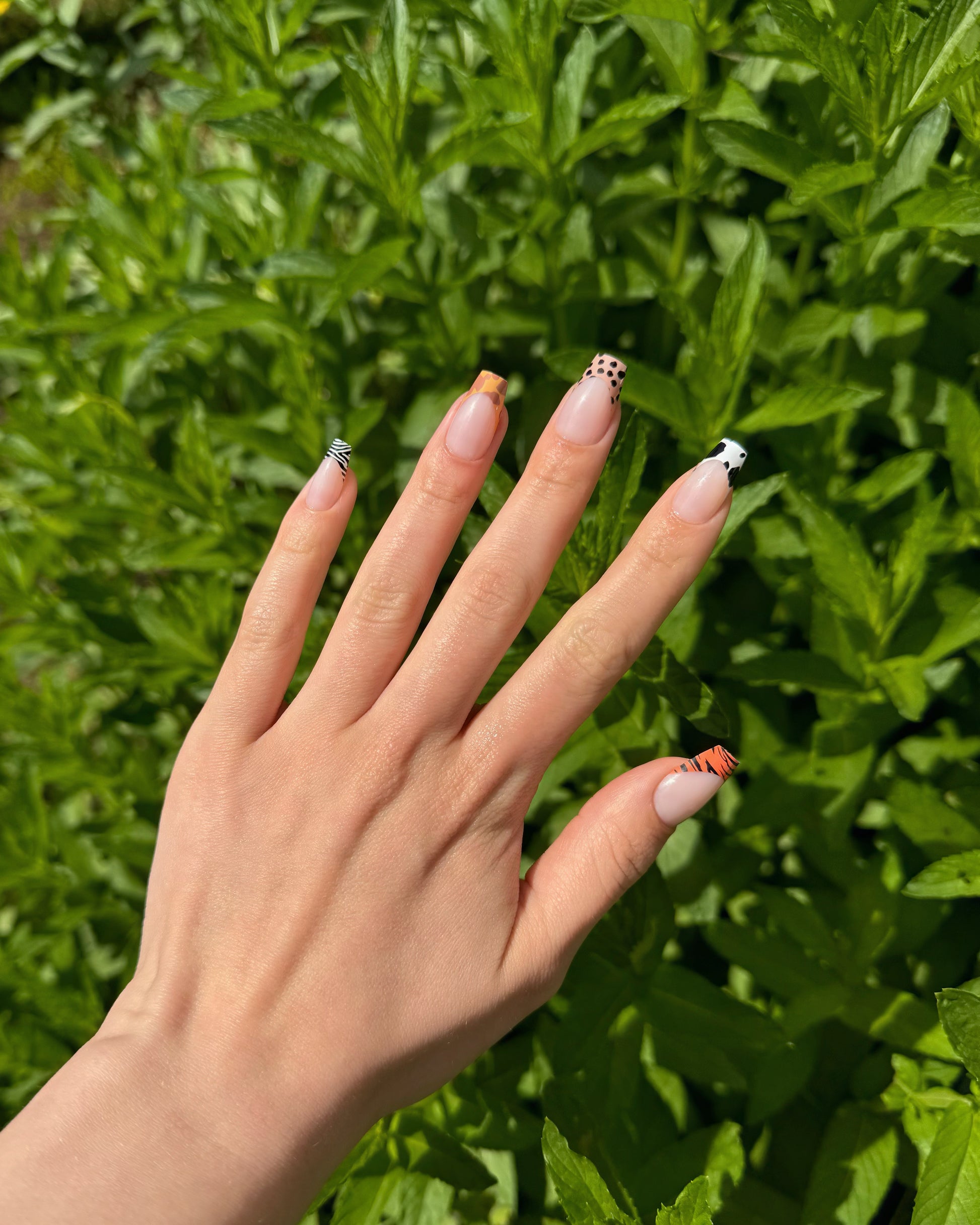 - 2 folii de adeziv pentru unghii (cu care manichiura rezistă 2-3 zile)